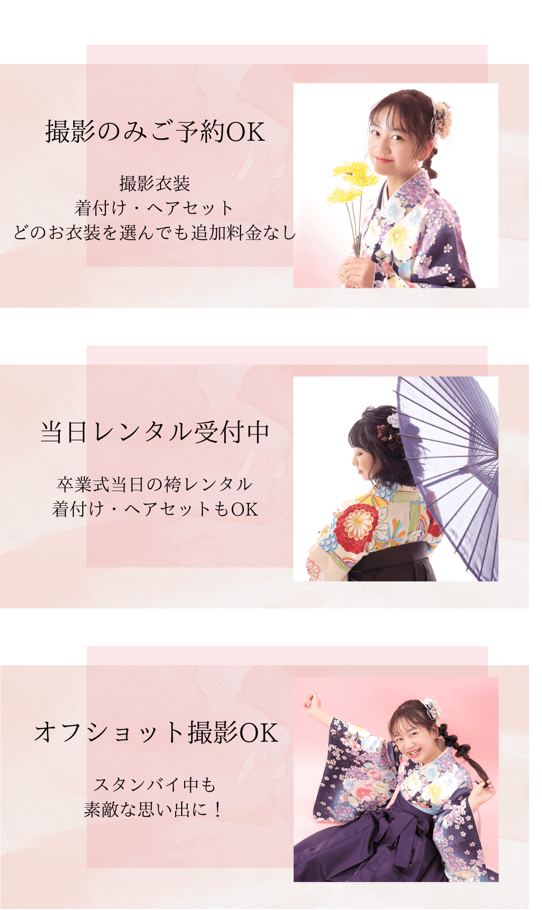 卒業式の袴写真撮影のご案内大阪・堺で成人式 前撮り写真館撮影スタジオなら ハニーアンドクランチ。
