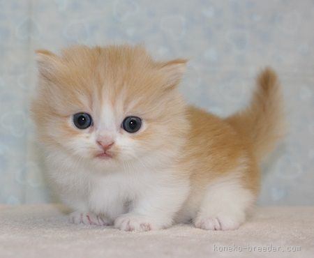 マンチカン 短足兵庫県・女の子・2021年1月11日・クリームタビー&ホワイト とってもかわいい赤ちゃん です。みんなの子猫ブリーダー 子猫ID:2102-00504。