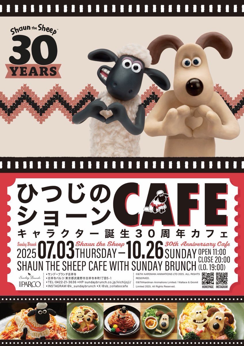 ひつじのショーン 30周年カフェ in サンデーブランチ吉祥寺 7月3日開始。