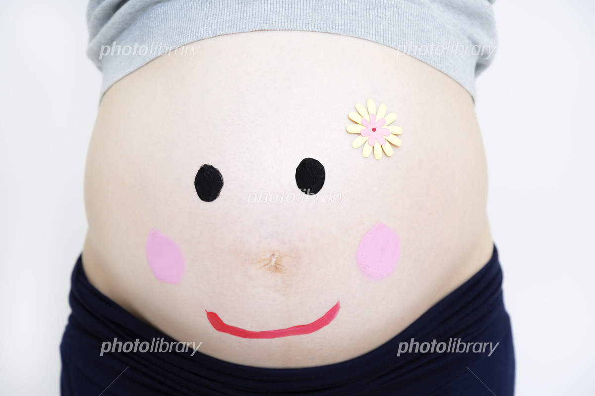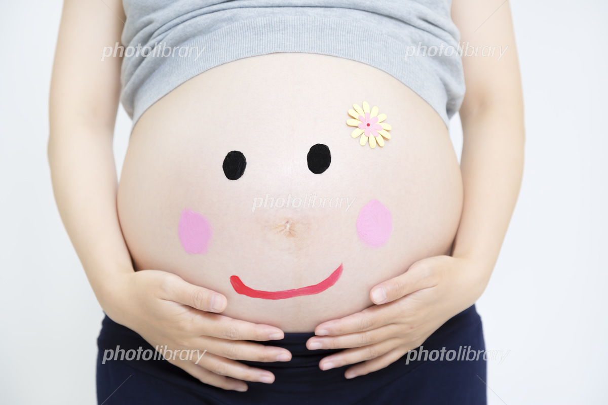 大きなお腹に描かれたマタニティペイント 臨月,妊娠,ベリーペイント,愛,幸せイメージ 写真素材5802834- フォトライブラリ。