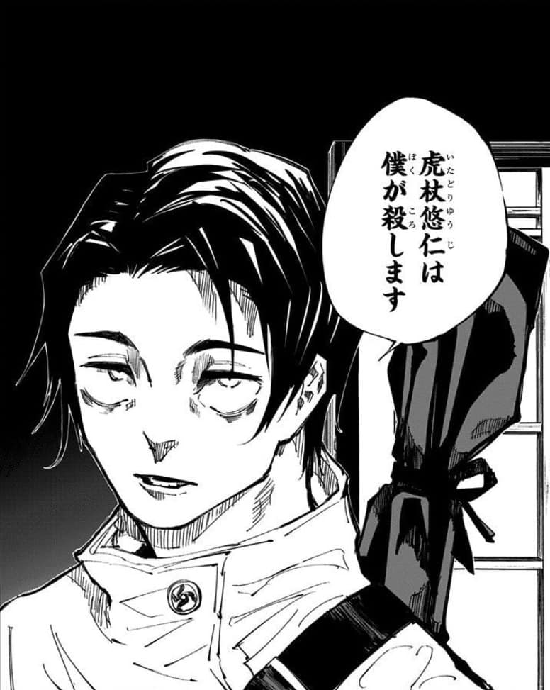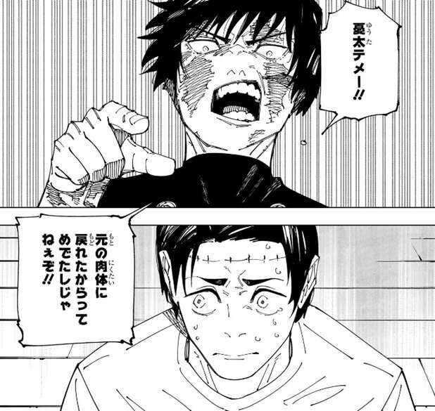 呪術廻戦 262話-2 人外魔境新宿決戦34-2”狗巻覚悟の”動くな”無防備の宿儺に虚式・茈炸裂⁉︎にせくらげの呪術廻戦、ONE PIECEブログ。