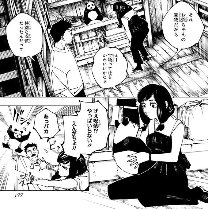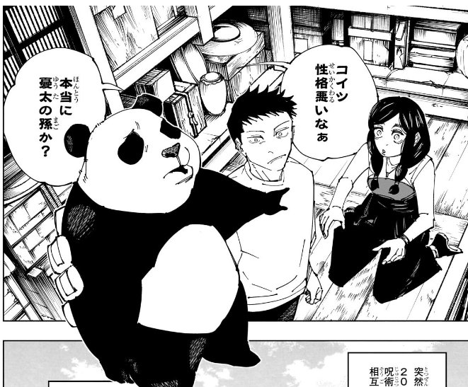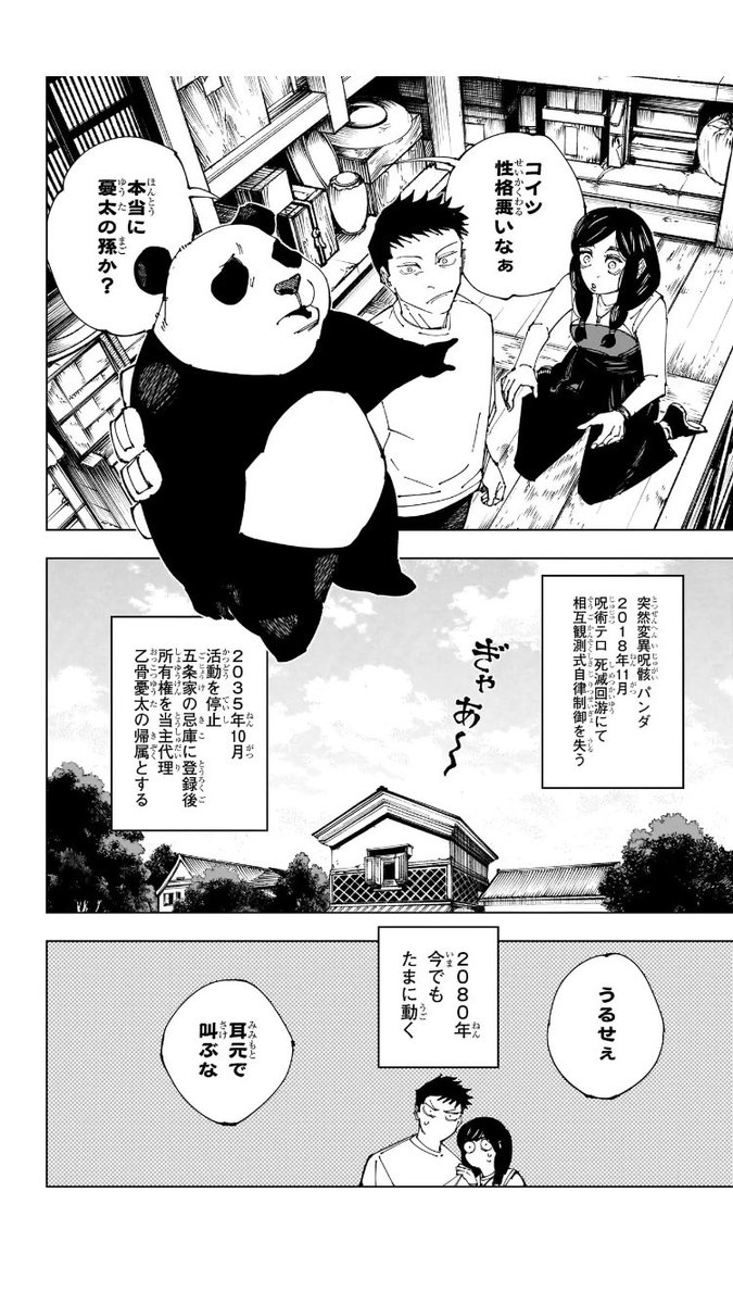 whiskycat on X: " 呪術廻戦最終巻エピローグ パンダ 2080年現在も 時々動く というか憂太の孫 がでてくる え? だれと結婚 したのか気になるw 画像 ©芥見下々 集英社 30巻引用 https:t.co 2iThcWo85d"X。