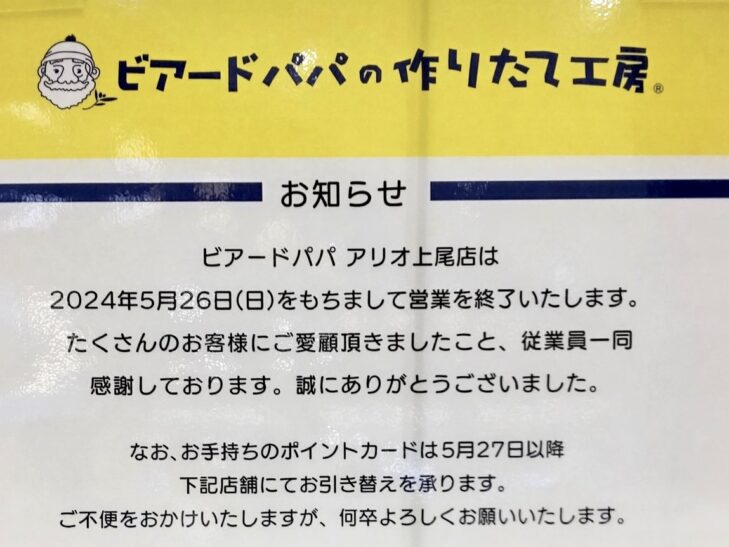 上尾市 高砂屋 PAPA上尾店が閉店していたことがわかりました!埼玉マガジン。