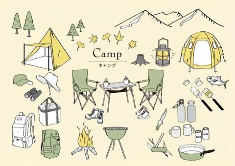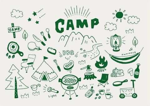 手書きイラスト無料キャンプ セットイラストダウンロード。