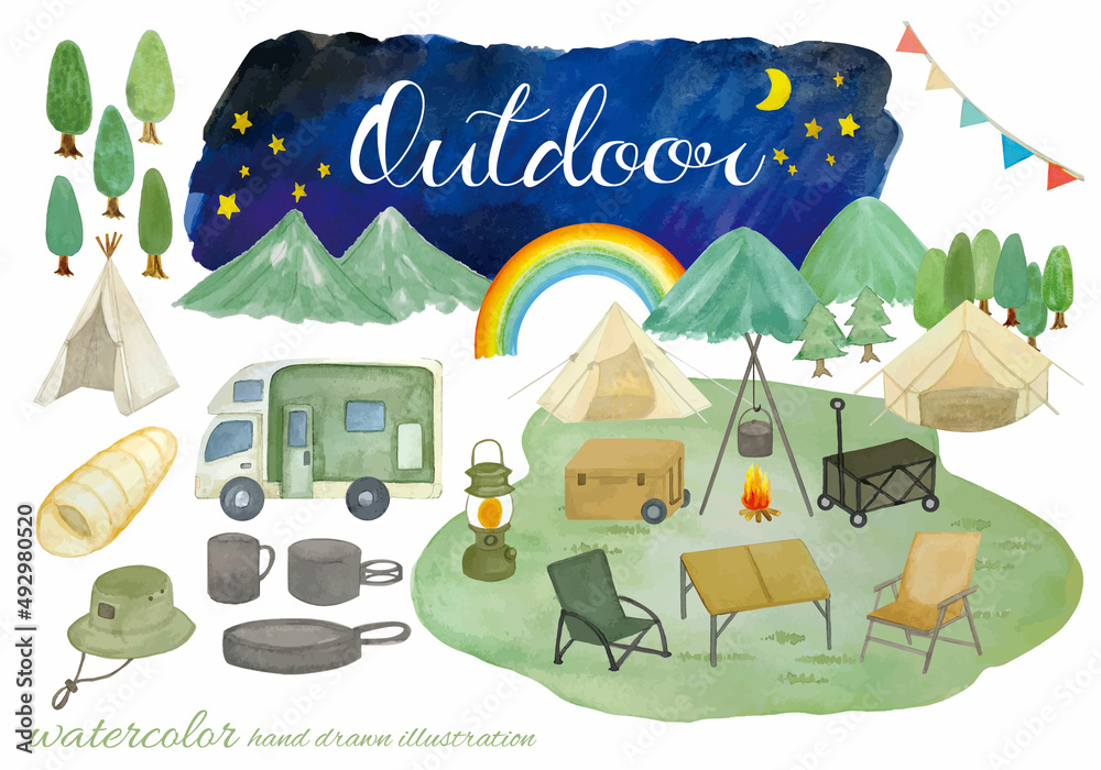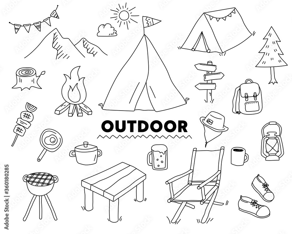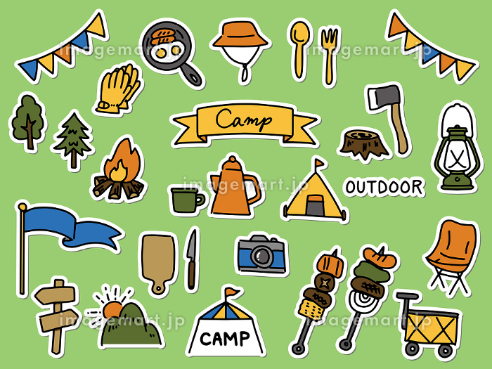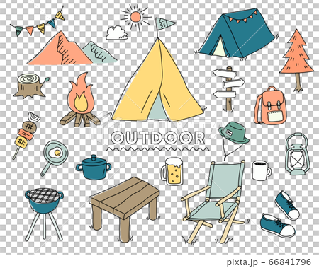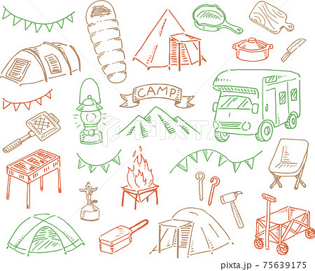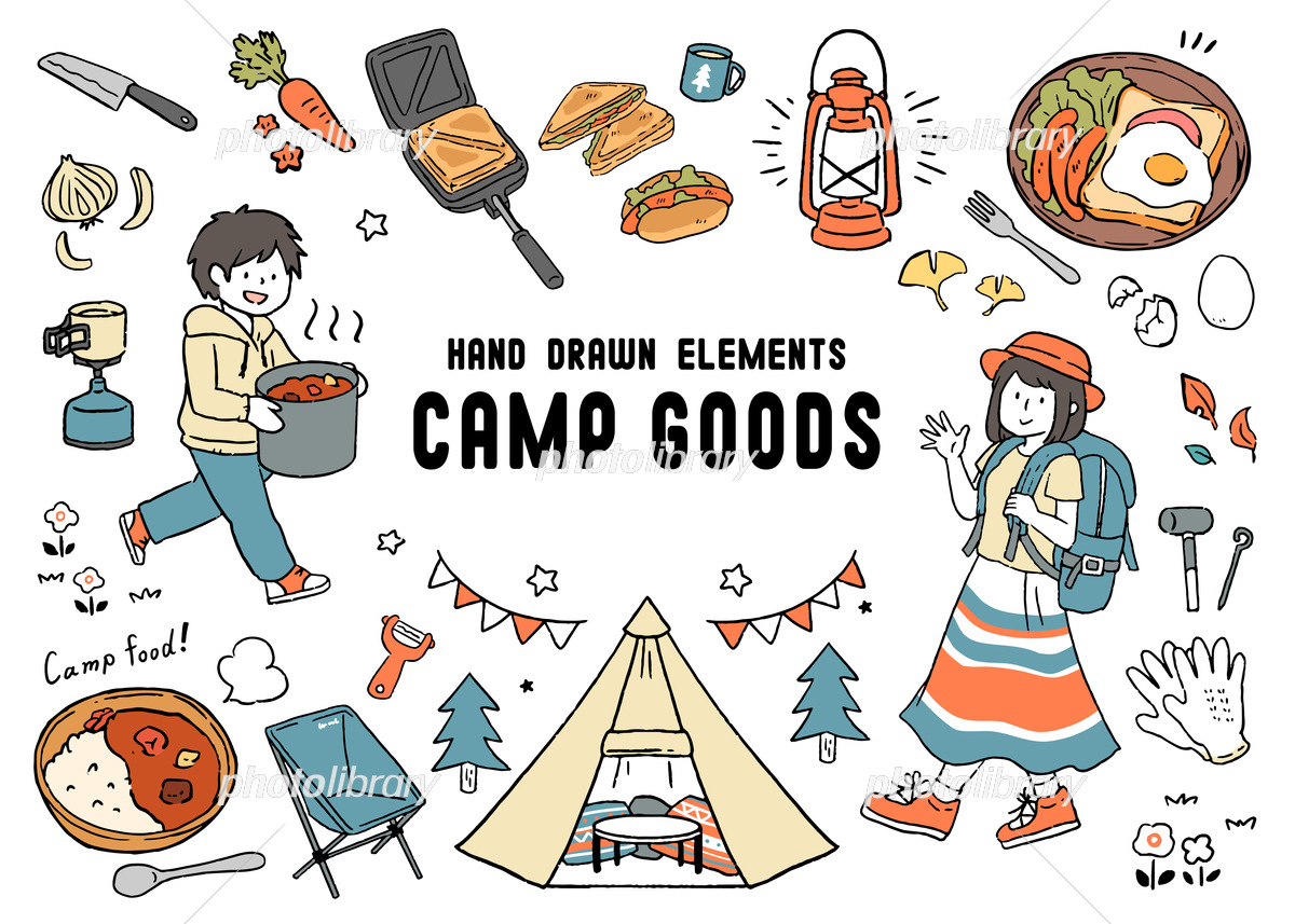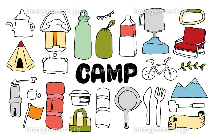 手描きのキャンプグッズのイラストまとめ 3色 アウトドアのイラスト素材75639175- PIXTA。