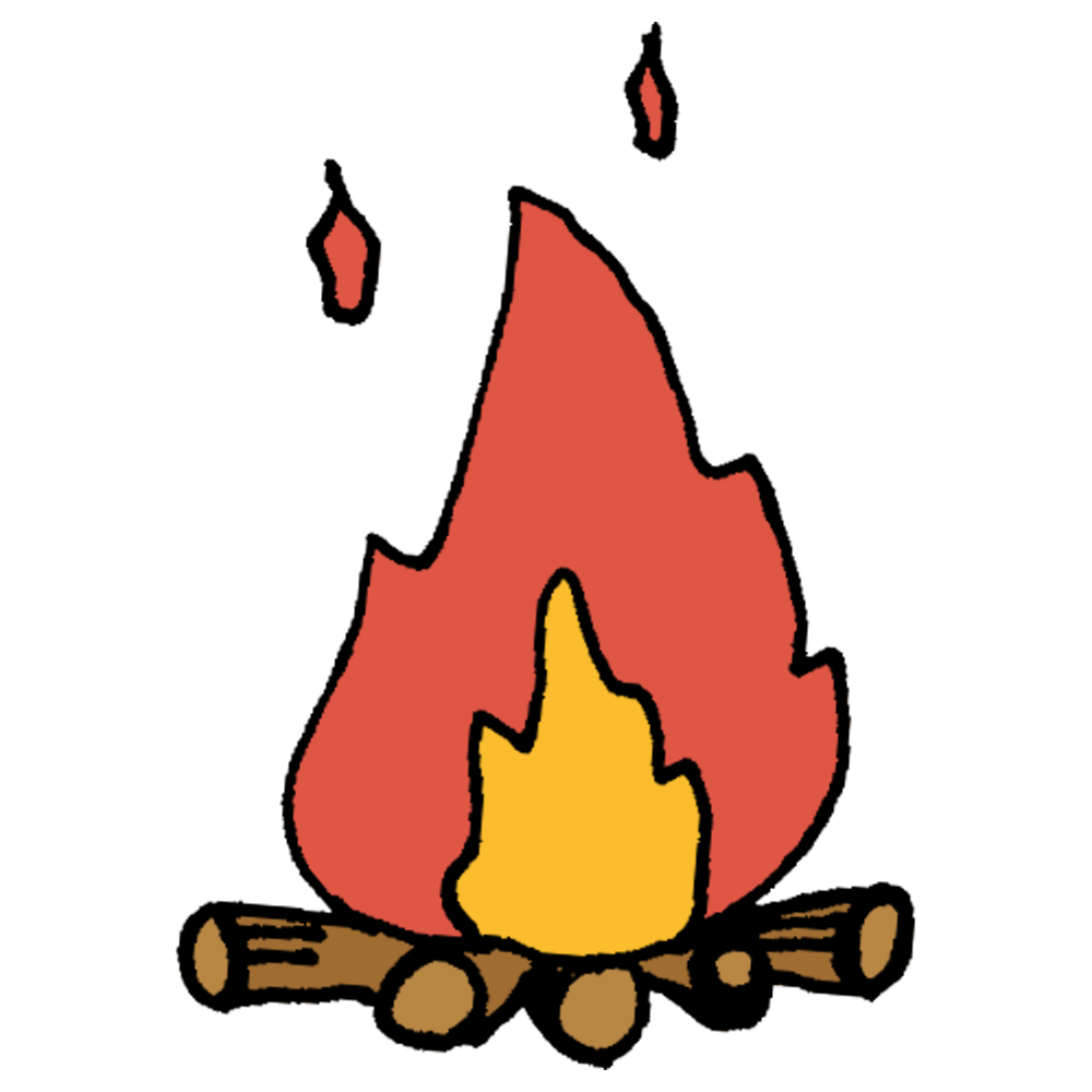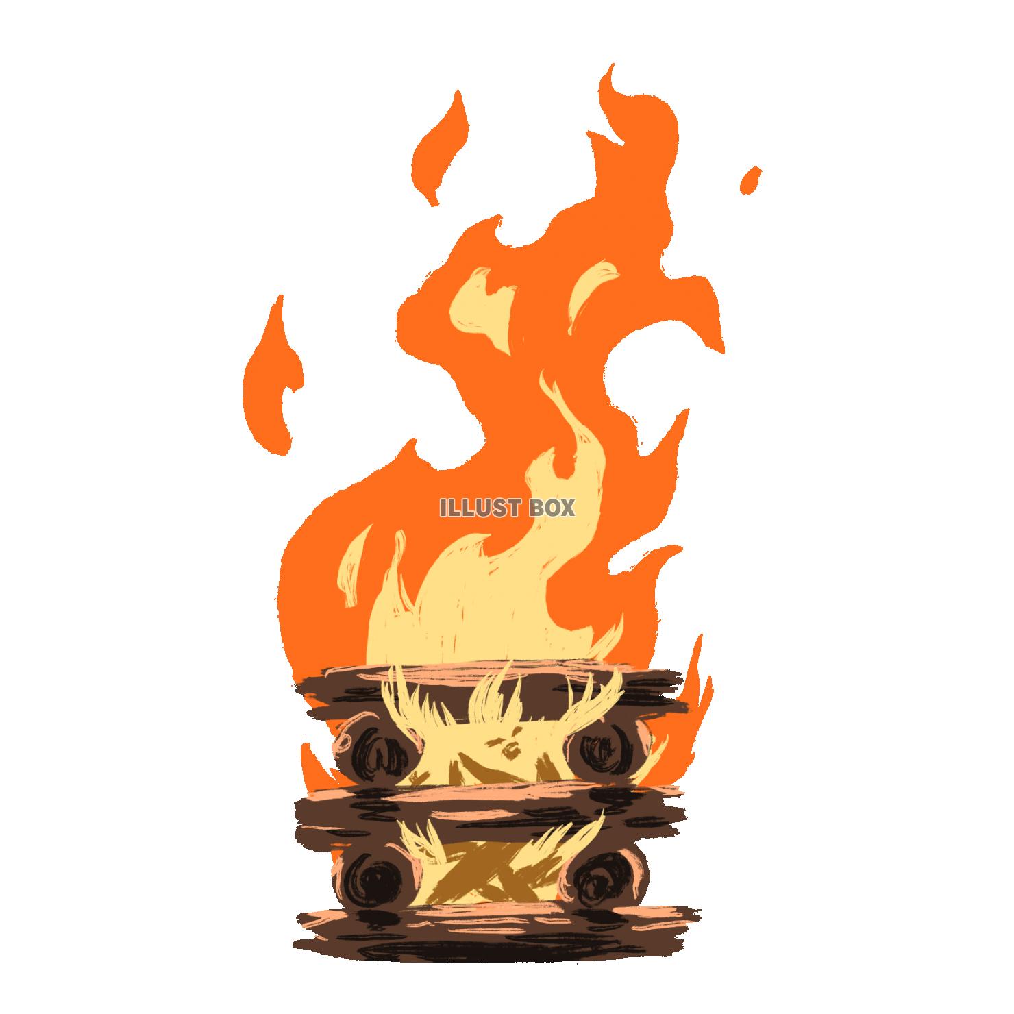 無料素材キャンプファイヤーの炎を描いたイラスト。楽しいデザインに。