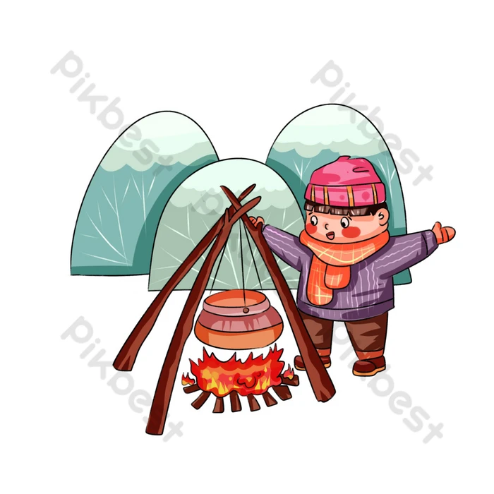 冬にキャンプファイヤーを加熱する小さな男の子の手描きイラスト イラスト フリー素材PSD無料ダウンロード - Pikbest。