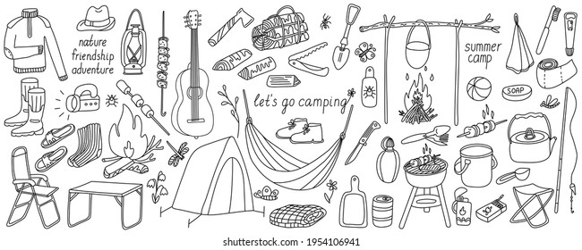 シンプルでかわいいキャンプ用品の手描きイラストセットのイラスト素材・ベクター Image 152315934。