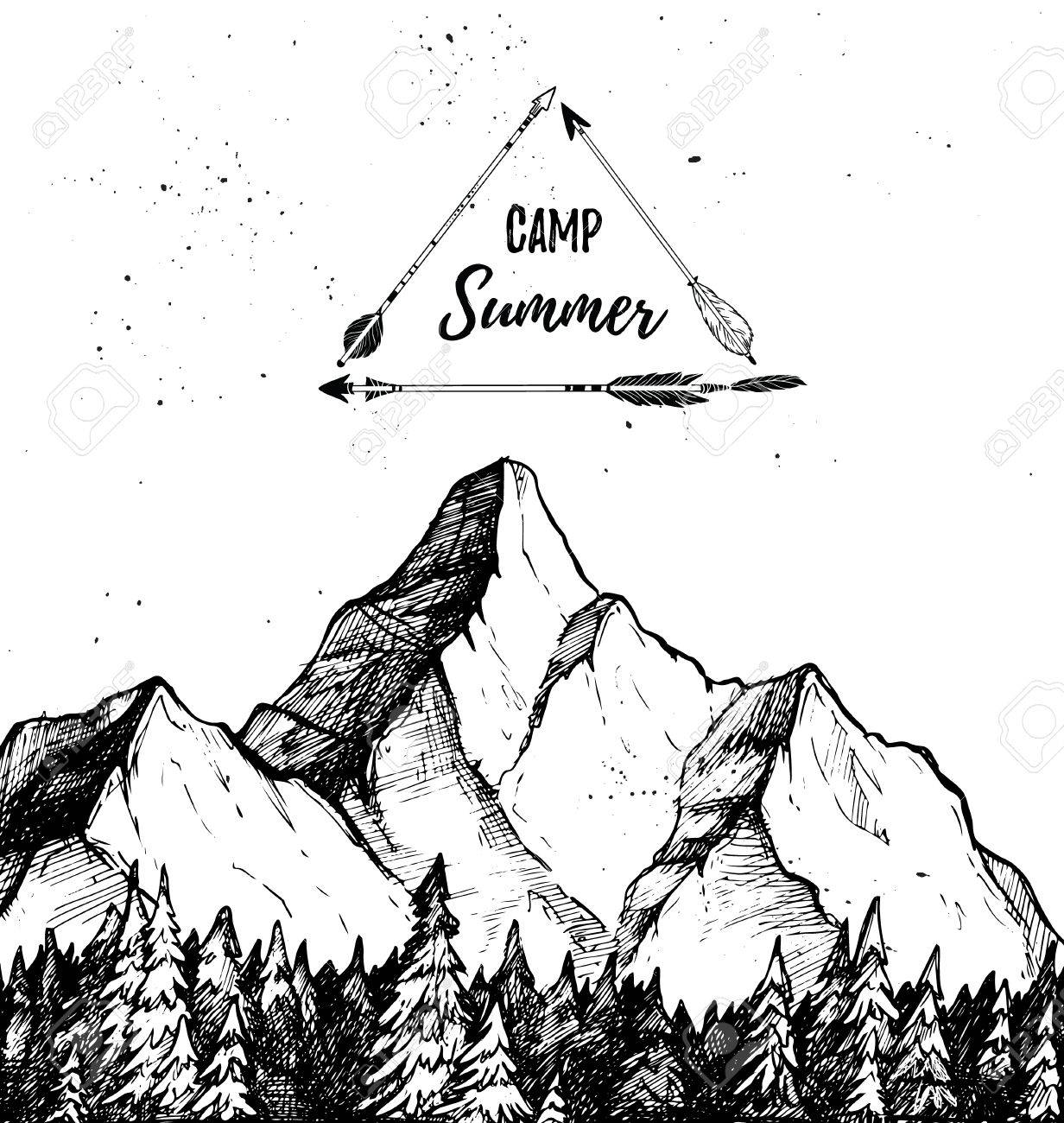 手書きのベクトル イラスト - 夏のキャンプ。山と森。風景自然のイラスト素材・ベクター Image 70462889。