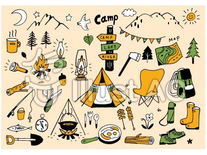 手書きアウトドアキャンプイラストセットイラスト - No: 1281878無料イラスト・フリー素材なら「イラストAC」。