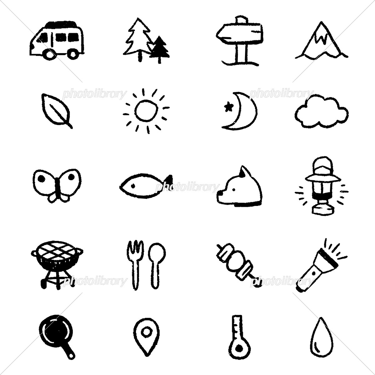サマーキャンプの手書きイラスト アイコンセット モノクロ252563437- イメージマート。