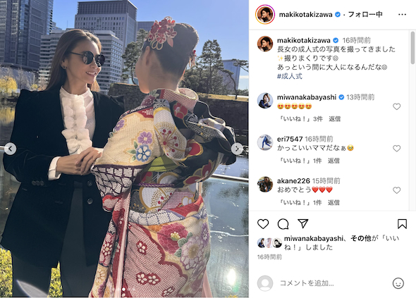 滝沢眞規子、振袖姿の長女を満面笑顔でギュ〜ッ モデル母と同じ背丈の娘に反響「やはり親子、後ろ姿が似てます」「上品さが醸し出てる」 1 2ねとらぼ。