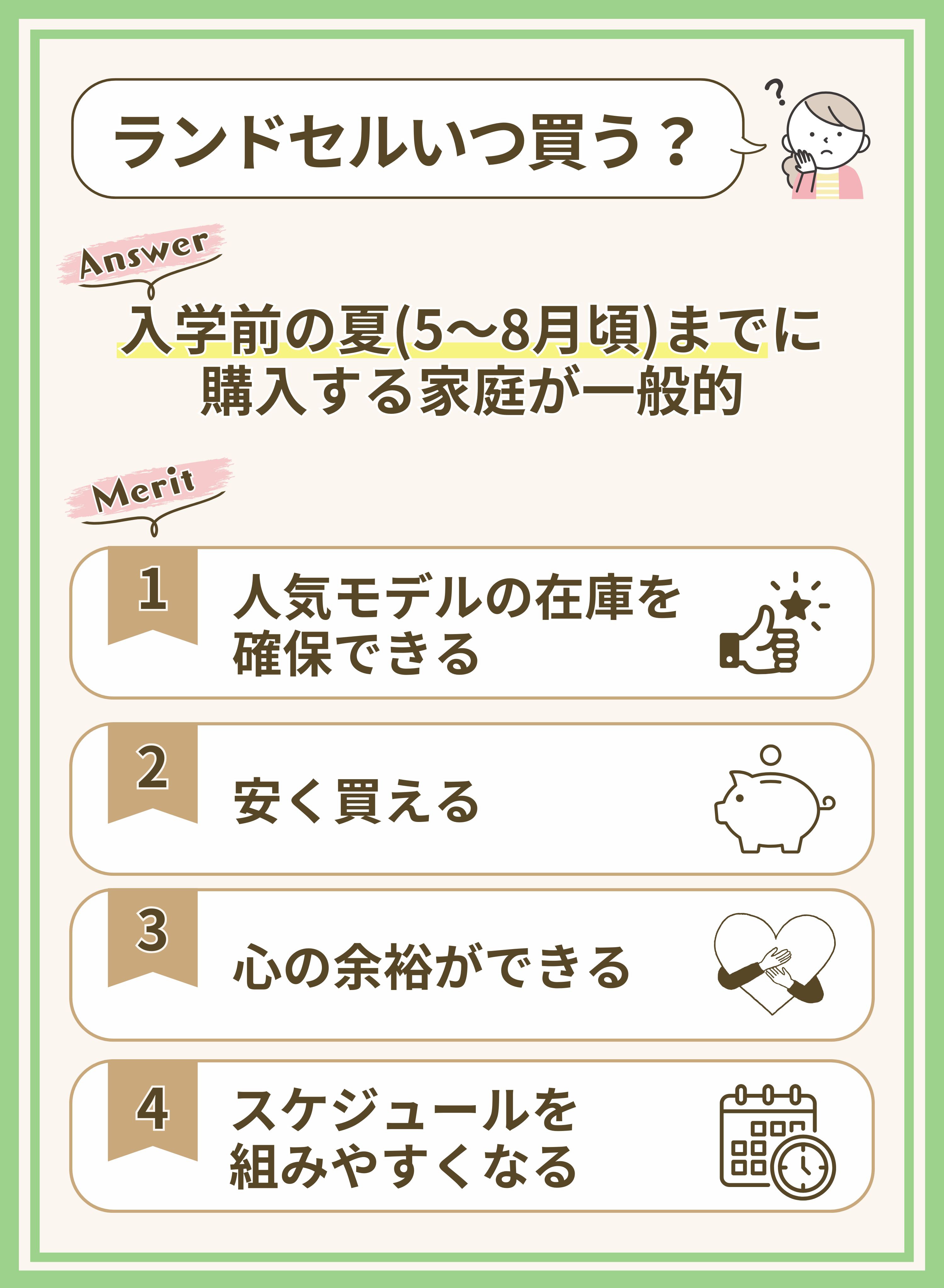 ランドセルはいつ買う?ラン活すべきタイミングと購入時期ごとのメリット・デメリット 2025年度ふわりぃランドセル公式オンラインショップ。