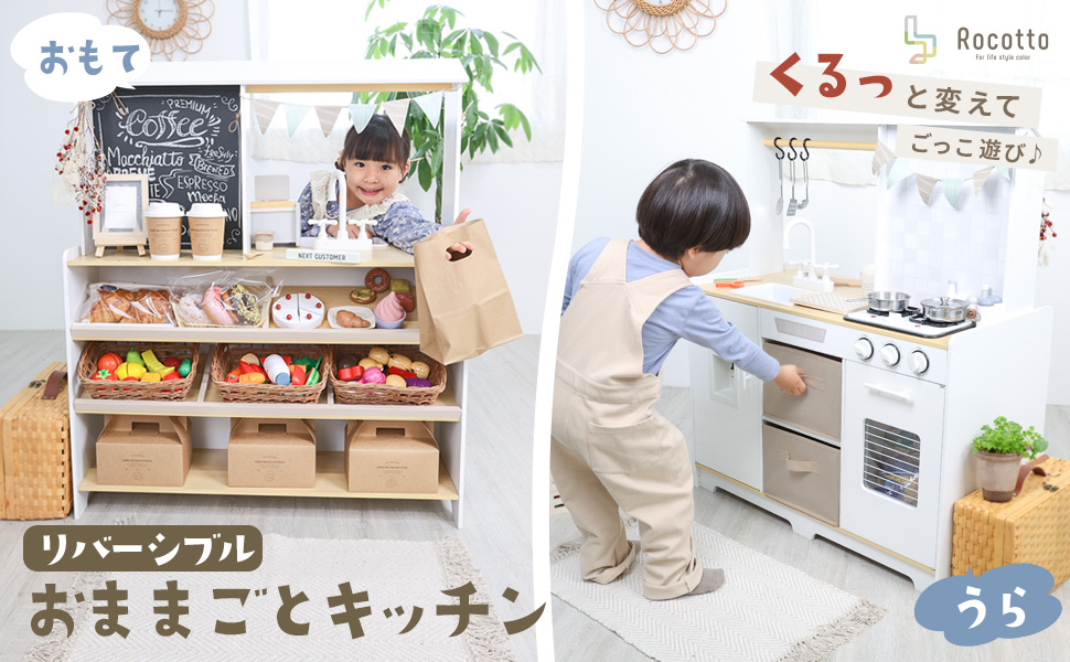 お店屋さんごっこ おもちゃ おままごと 木製 リバーシブル 子供 入園祝い 卒業 プレゼント 女の子 男の子 玩具 知育 お店 幼児 キッズカウンター ごっこ遊び 孫 Rocotto おままごとセット1年保証雑貨マニアmarz。