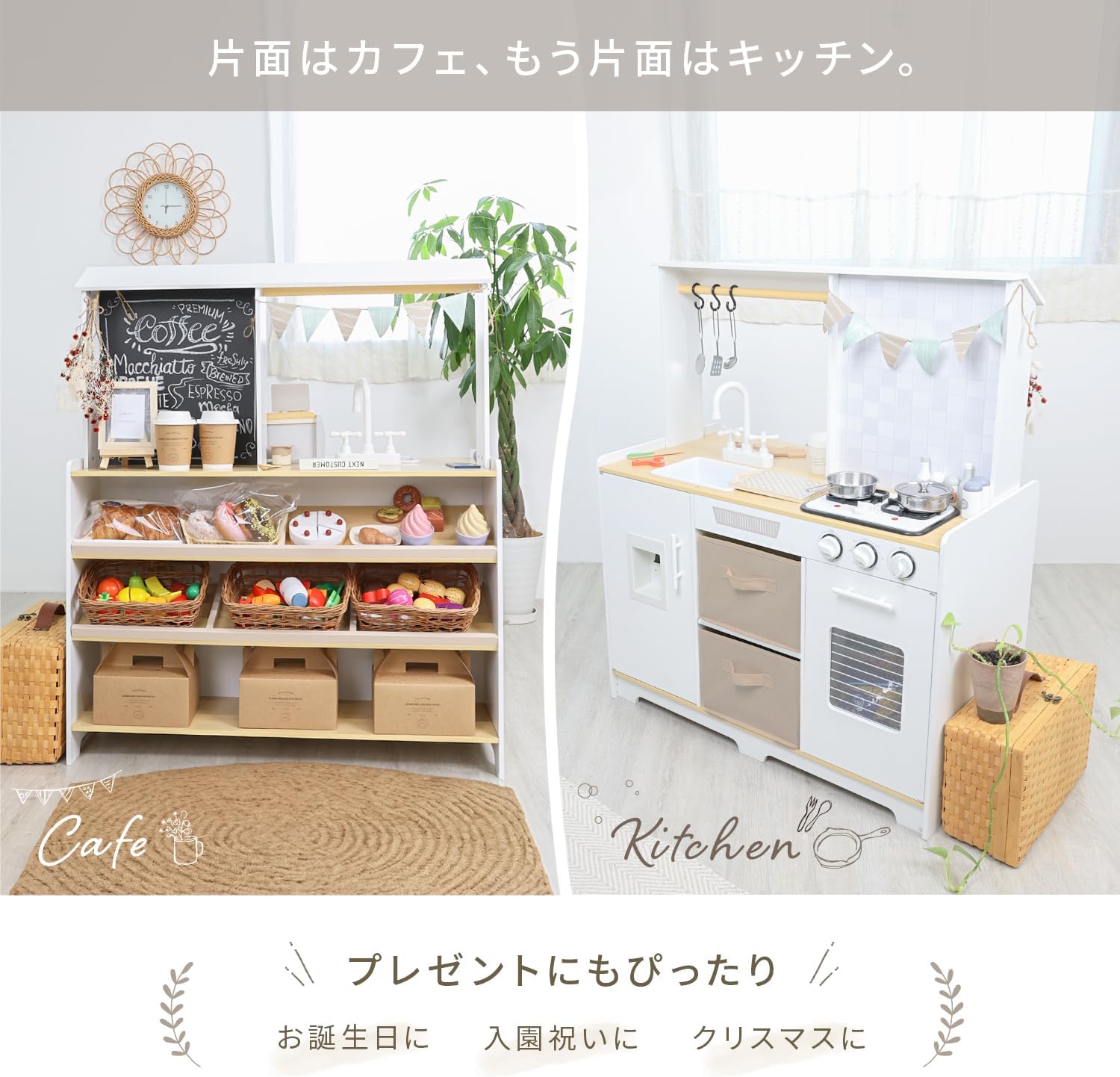 おままごとキッチン お店屋さんごっこ おままごとセット おもちゃ キッチン カウンター おままごと お店屋さん お店 玩具 ごっこ遊び ままごと 木製カフェ プレゼント 幼児 キッズ 誕生日 クリスマス 家事 知育 勉強 おままごとキッチン リバーシブル おもちゃ。