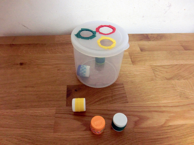 手作りおもちゃ ペットボトルのふたで音の鳴るくっつくおもちゃ - のんびり生活備忘録。