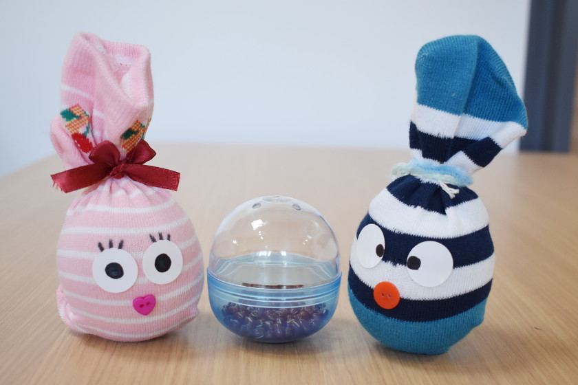 DAISO 材料で、赤ちゃんの音の出るおもちゃの作り方。