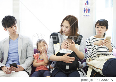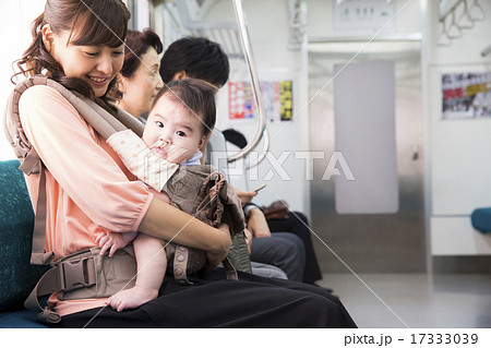 赤ちゃんを抱っこして電車に乗る若い女性の写真素材17333012- PIXTA。
