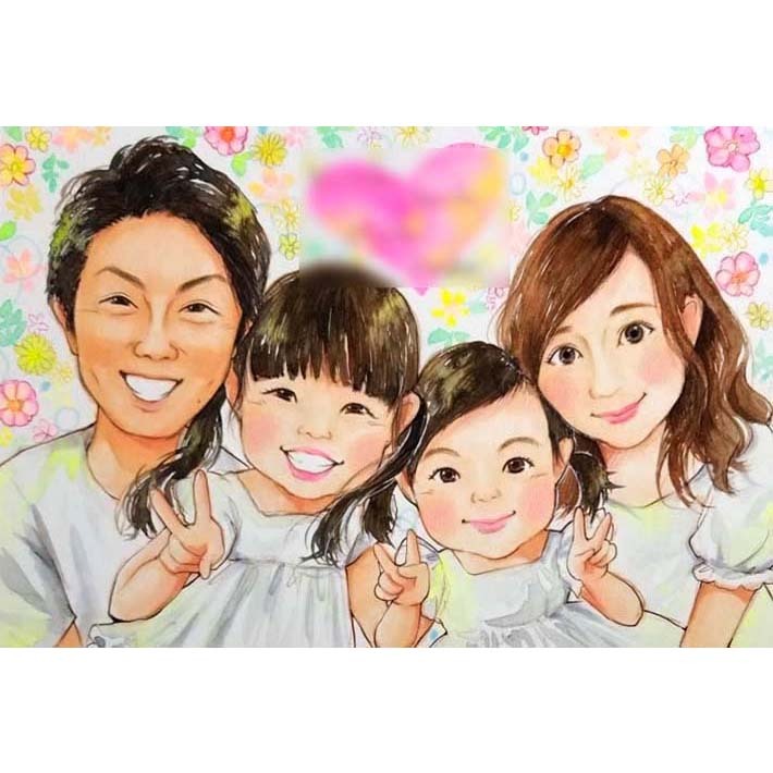 家族写真の代わりになる記念写真風の似顔絵 写真にはないあたたかみのある思い出になります 結婚記念日 誕生日 入学 入園 家族の節目の思い出にあきよ -似顔絵 プレゼント お祝い似顔絵おむすび - プレゼント&ギフトのギフトモール。