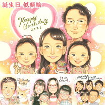 家族のお祝い記念似顔絵のプレゼント-超リアルな似顔絵プレゼントならアトリエ エイト。