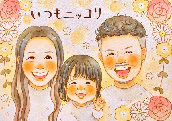 家族の似顔絵 新築祝いやポートレートとして手書き似顔絵なつみかん。