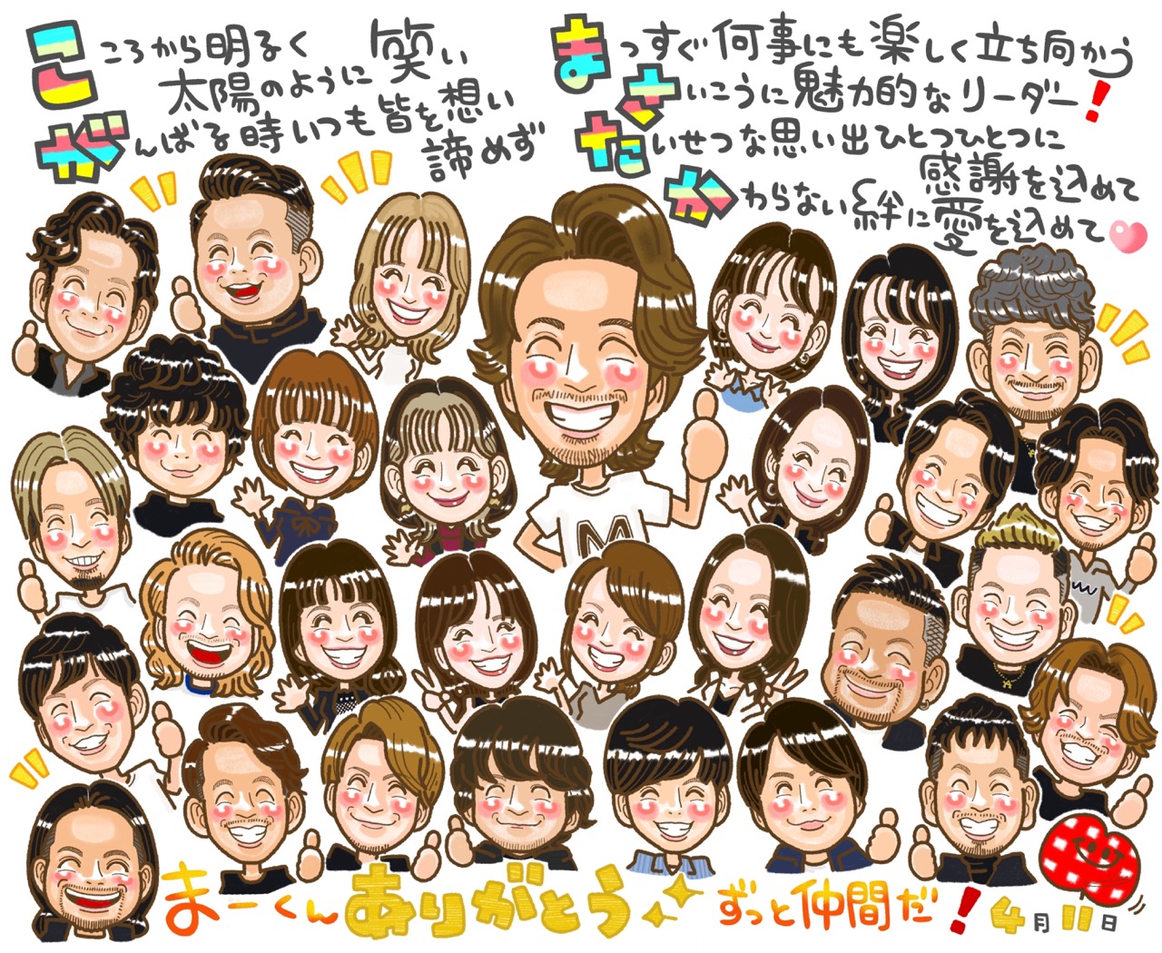 似顔絵 家族 ファミリー 大人数 お祝い 記念 プレゼント ギフト 子供 成長記録 女性に人気の似顔絵。家族の記念写真風の似顔絵 あきよ -似顔絵プレゼント お祝い似顔絵おむすび - プレゼント&ギフトのギフトモール。