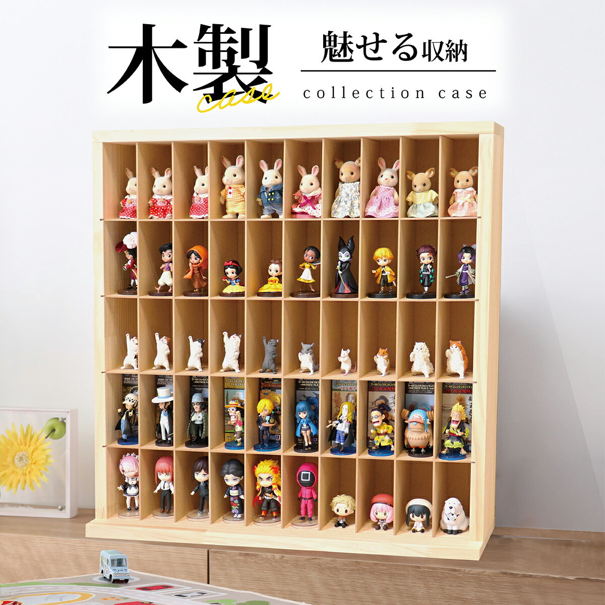 日本製 木製コレクションケース5×10マス 全50マス 扉なし │ おもちゃ収納 コレクションケース ワーコレ アニメ シルバニアファミリーガチャガチャ。