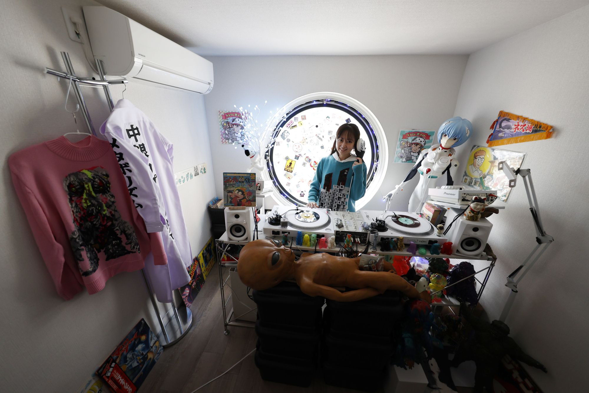 室内をDJブースやサブカルチャーのグッズで構える声さん=2021年3月、池田良撮影 7 20 -銀座のカプセル 魅せられて中銀カプセル:朝日新聞デジタル。