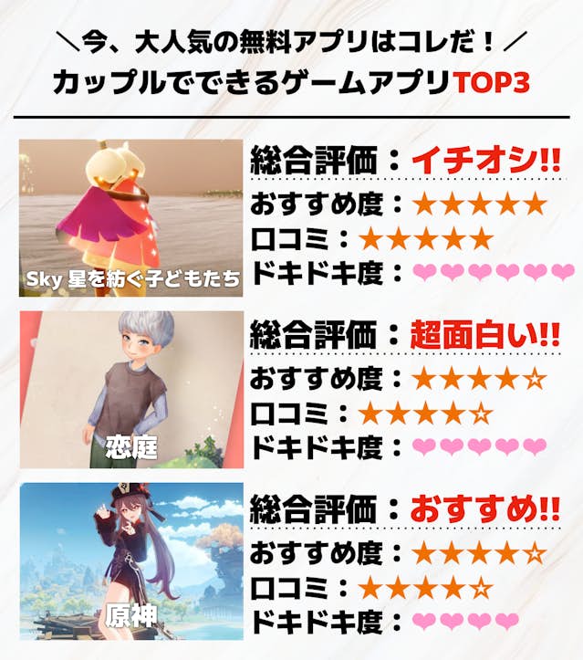 カップルで遊べるゲームアプリのおすすめ人気ランキング 2025年マイベスト。