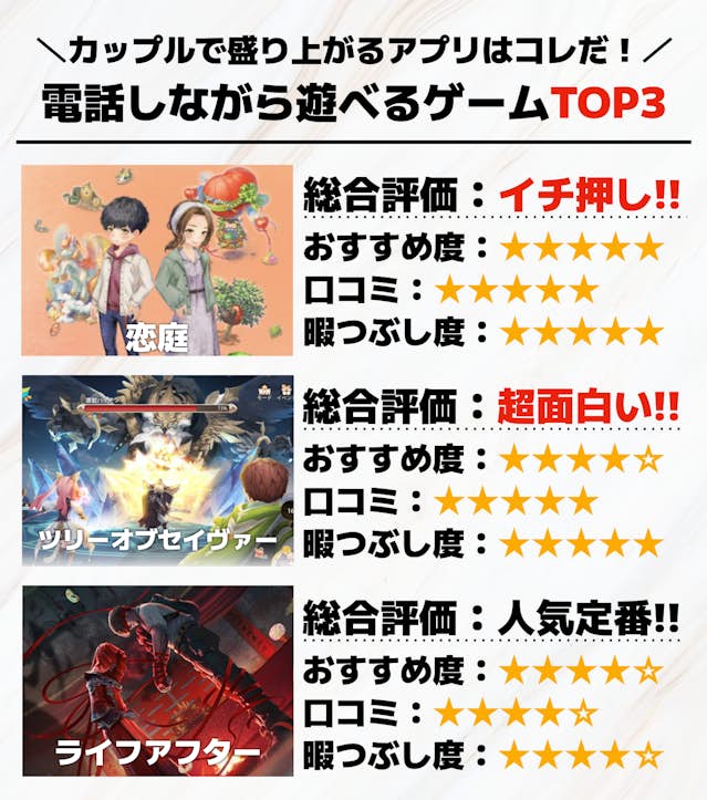 電話しながらカップルで遊べるゲームアプリのおすすめ38選。通話中でも恋人と盛り上がるスマホゲーム特集セレクト。