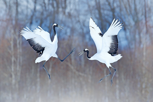 赤冠鶴を開いた羽冬北海道日本の踊り合い自然の中で雪のダンス雪の中の美しい大きな白い鳥の求愛動物の愛交配行動鳥のダンス -いっぱいになるのストックフォトや画像を多数ご用意 - iStock。