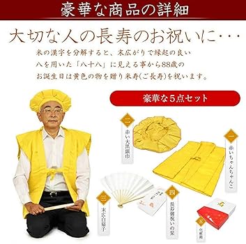 KIMONOMACHI 傘寿・米寿・卒寿 頭巾、ちゃんちゃんこ、末広セット 「黄色」 長寿お祝い 熨斗、ラッピング無料 ギフト 贈り物80、88、90歳 送料無料メール便不可: 京都きもの町 - 通販 - Yahoo!ショッピング。