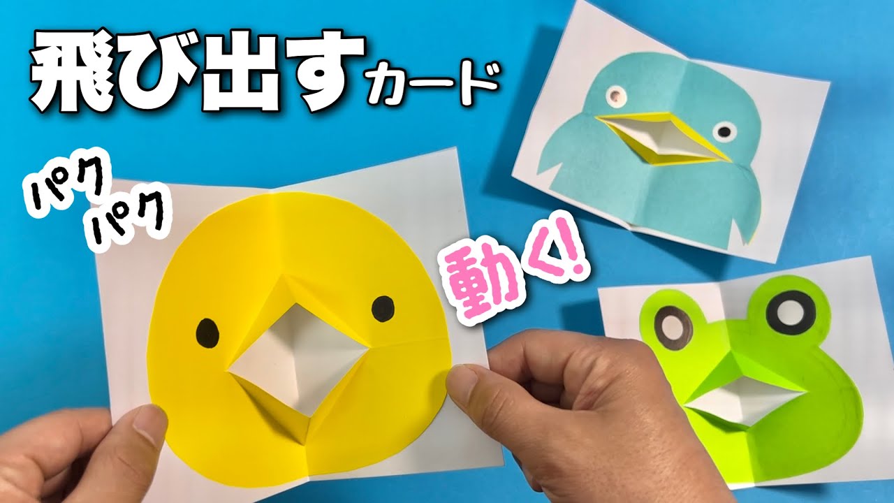 折り紙・工作 動物が飛び出す絵本! ポップアップカードひよこ・カエル・ペンギン 画用紙・作り方Origami!cute!!How tomake POP UP CARD。
