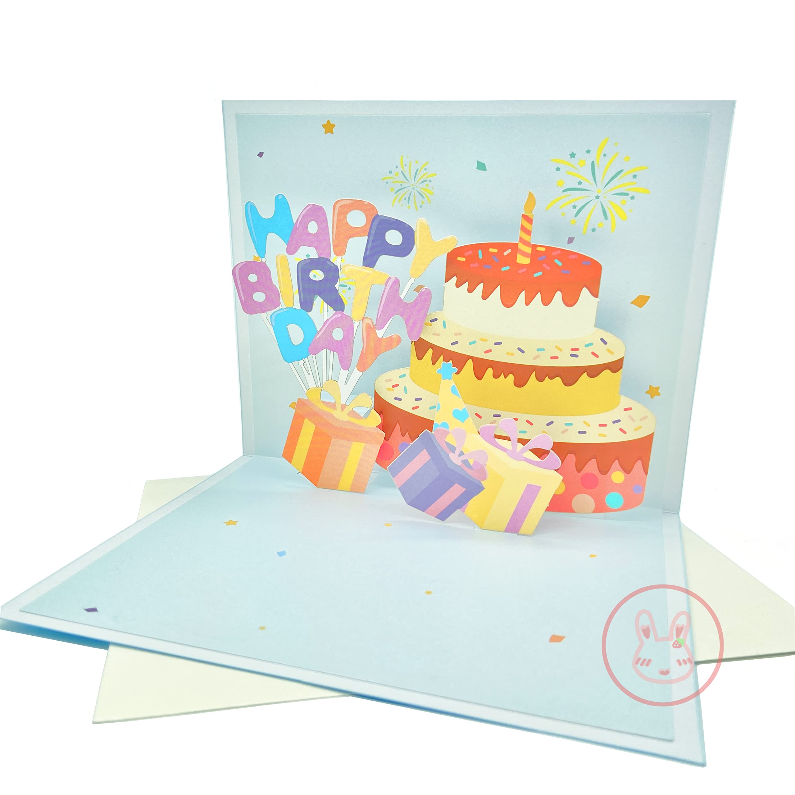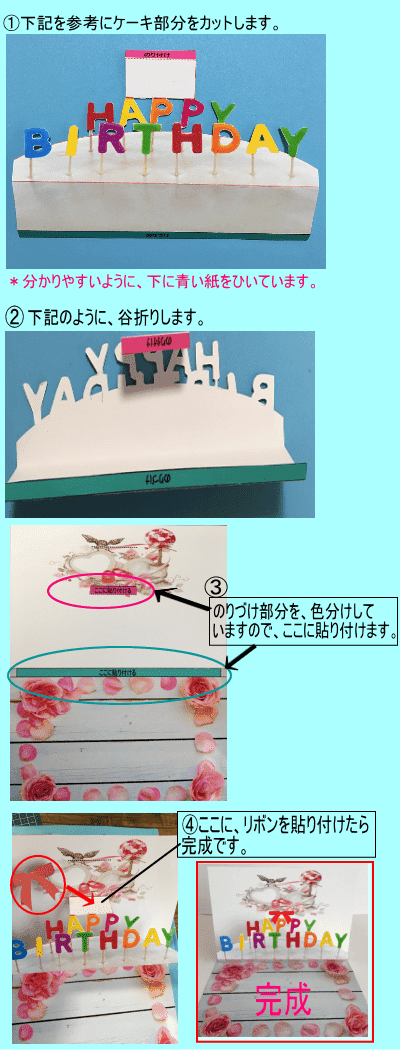 ポップアップカード HAPPY BIRTHDAYの文字が飛び出す!バースデーケーキ風カードが作れる型紙 ダウンロード販売HAPPYBIRTHDAY CRAFTS ハピバクラフト 〜誕生日の飾り付けや手作りメッセージカードのお店。