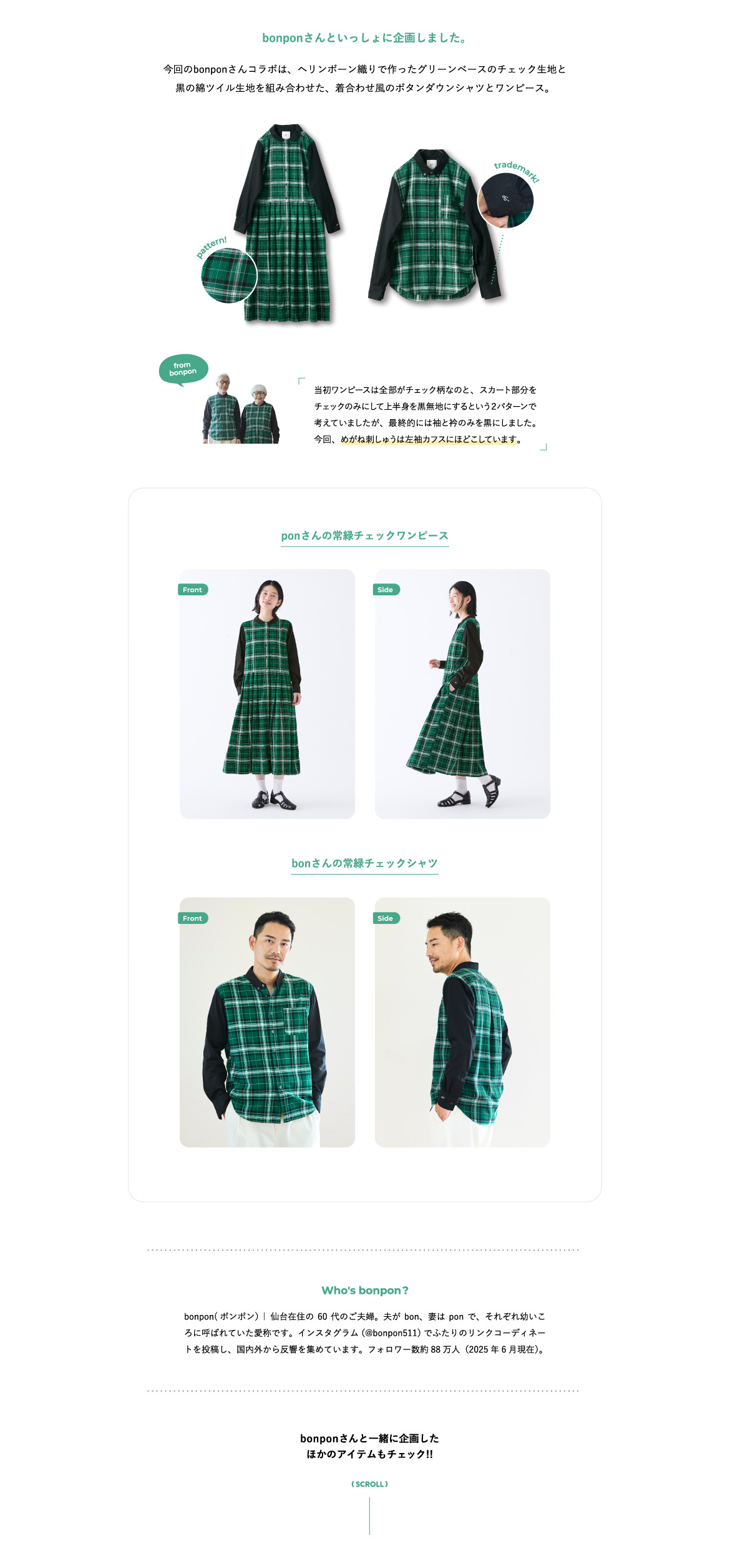 リンクコーデが注目を集めフォロワー82.7万人のbonpon夫妻とサニークラウズのコラボシリーズにパネルボーダーのワンピースとシャツが新登場株式会社フェリシモのプレスリリース。