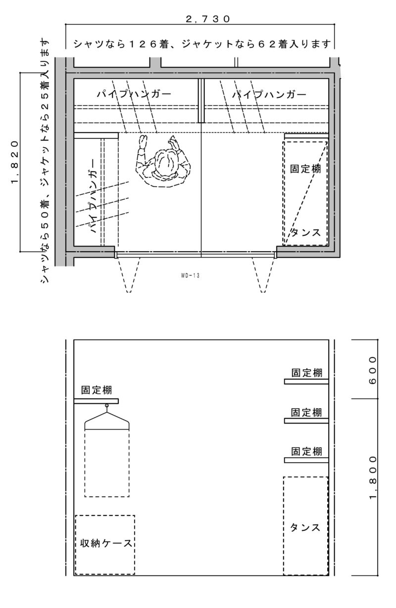 2畳のウォークインクローゼット の間取りを寸法付で3タイプ紹介! - かえるけんちく相談所。