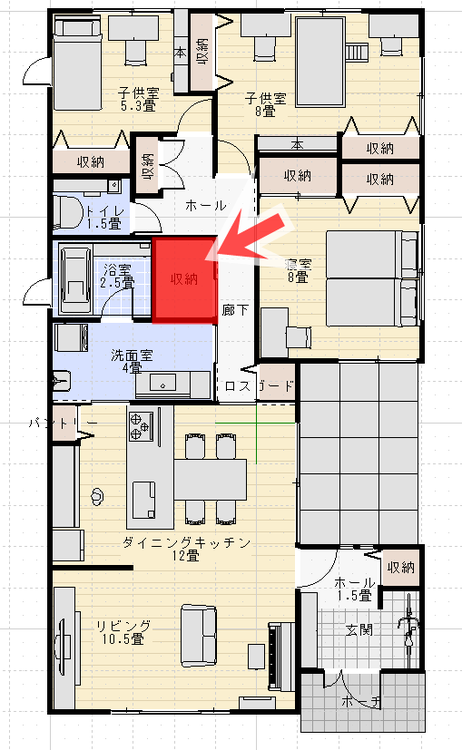 間取り 1.5畳のウォークインクローゼットの3つの良かった点なすノート@一条工務店で建てたコの字の平屋。