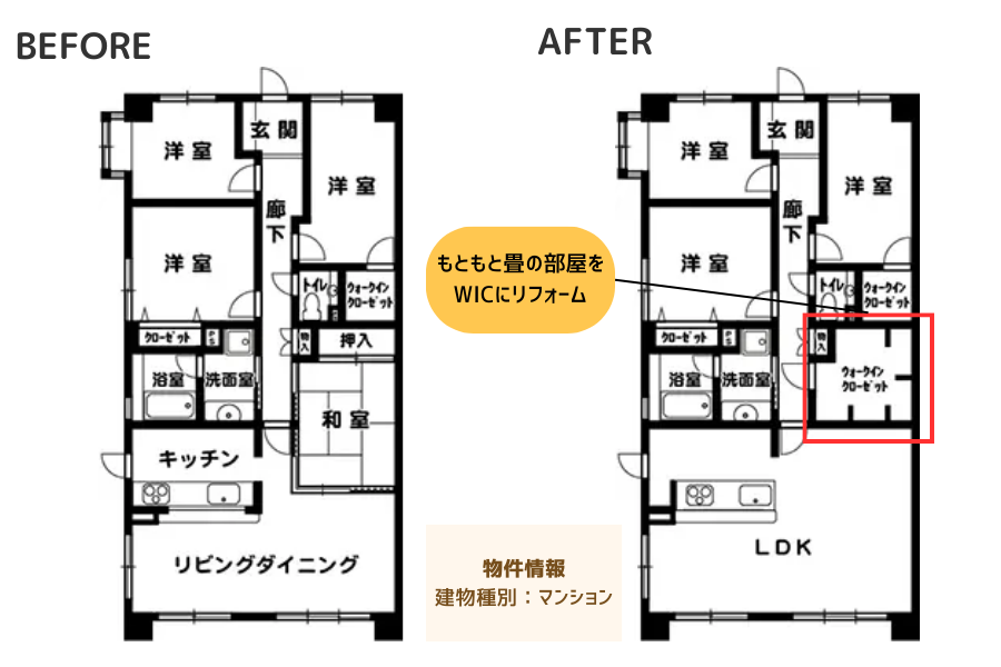 便利な寝室クローゼット間取りアイデア東京・千葉のリノベーション実例中古マンション・戸建てリノベーション&リフォーム。