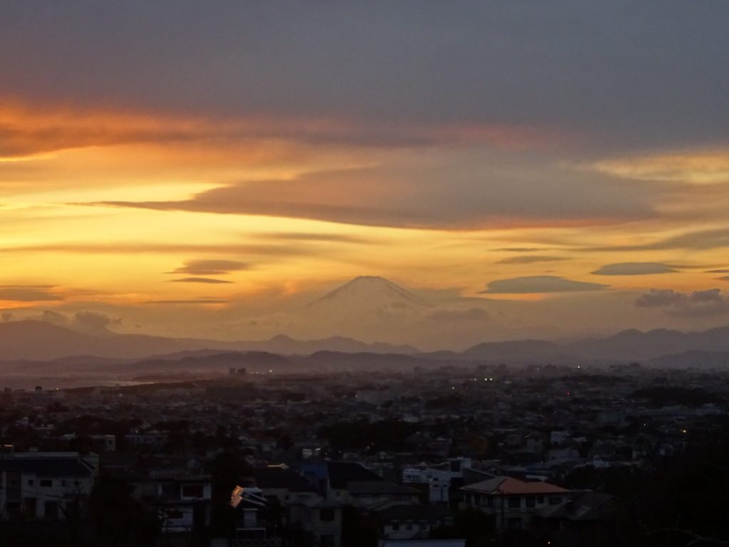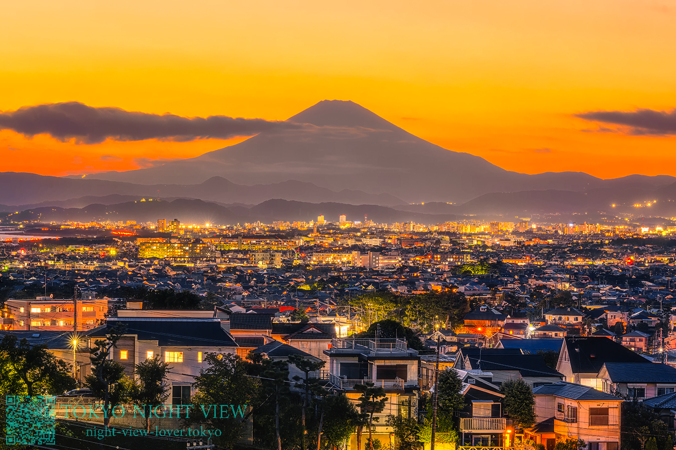 片瀬山富士見坂から夕暮れの富士山を撮るTokyo Night View。