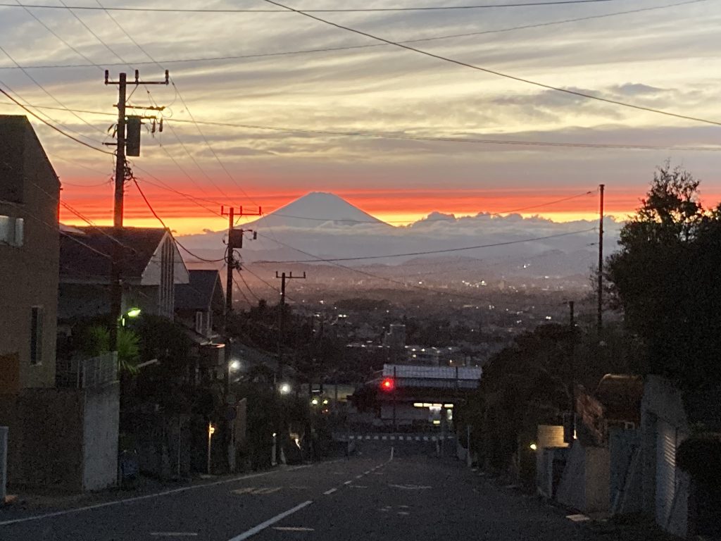 富士見坂から 朝日と夕日が美しかった3月 – 片瀬山 街ものがたり。