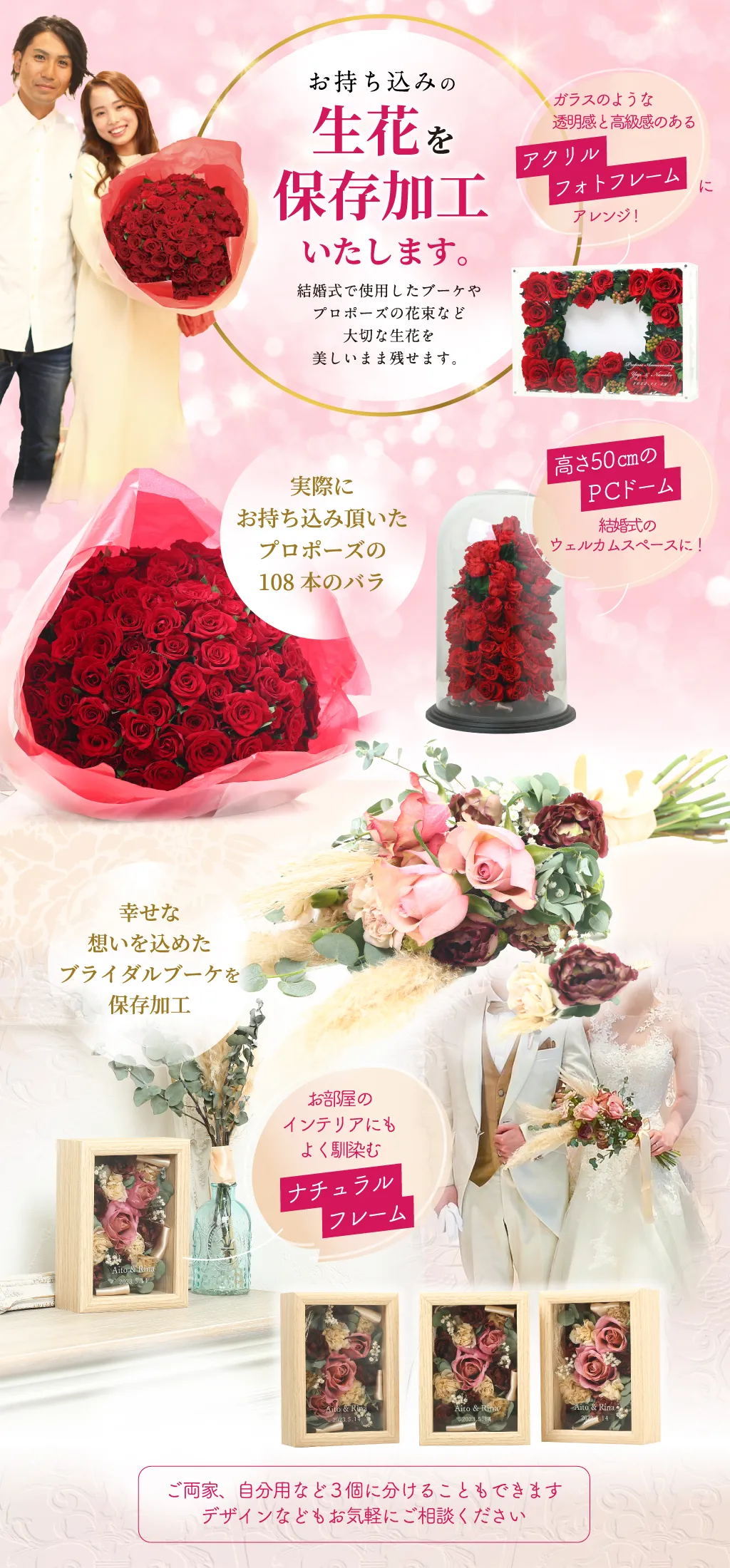 プロポーズ花束・結婚式ブーケ保存専門シンフラワーアフターブーケ・記念花の加工&特別なフラワーアート制作 全国対応・来店&オンラインOK。