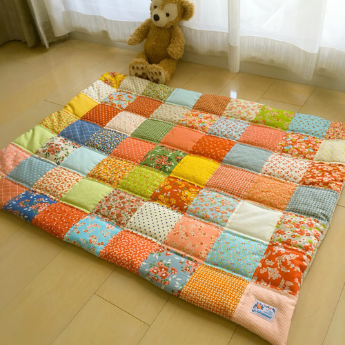 100cm×75cm 寝相アートにぴったり!四角つなぎのパッチワーク マルチマット kukka084 ベビーキルト 雑貨・その他 LAPSENIラプセニ 通販 2432121Creema クリーマ。