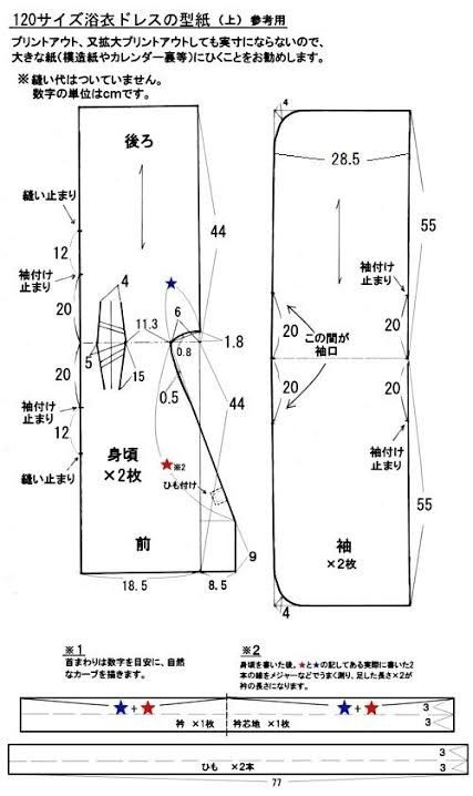 子供 型紙 浴衣 子供服 男の子 女の子 着物 7way アクティブ浴衣A3印刷orカット済み レシピ付き 型紙 MahoeAnela 通販18440241Creema クリーマ。