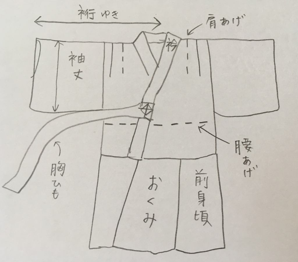 赤ちゃん浴衣 一つ身 を作る Day2:標準寸法と裁断図 - 着物好きが育てたら、着物好きな娘になったので。