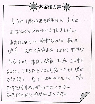 お客様の声 1歳の誕生日祝いギフト絵本専門店│誕生日や出産祝いにオリジナル絵本 ギフト絵本ドットコム。