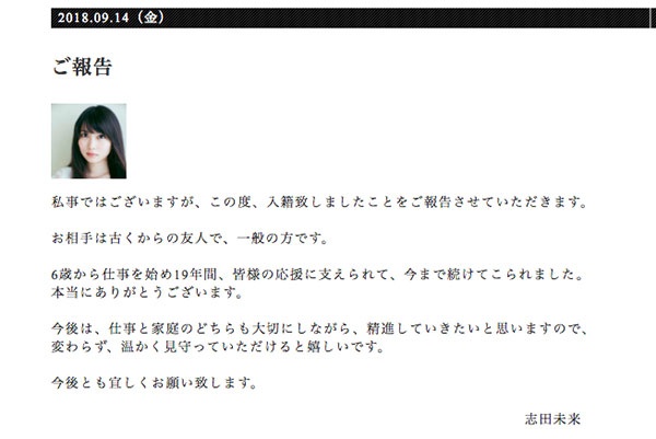 志田未来、一般男性との結婚発表 お相手は「古くからの友人」 最新ニュースeltha エルザ。