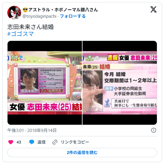 画像 志田未来の夫は大手証券マン!馴れ初めは小学校の同級生で同窓会で急接近。