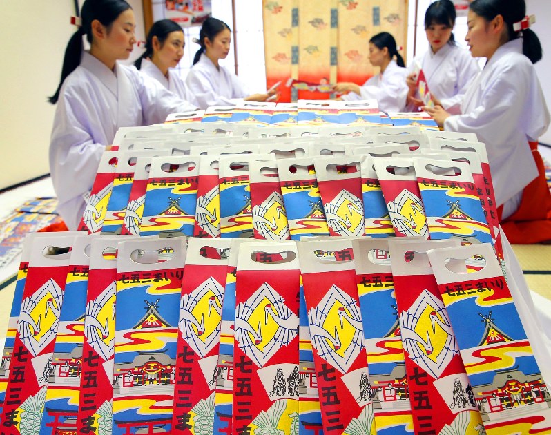 神戸:七五三前に千歳あめを袋詰め 生田神社毎日新聞。