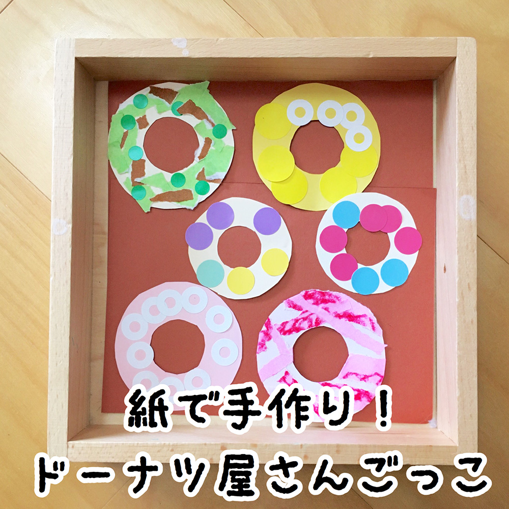 手作りおもちゃ ペットボトルのキャップでドーナツやさんごっこouchiedu。