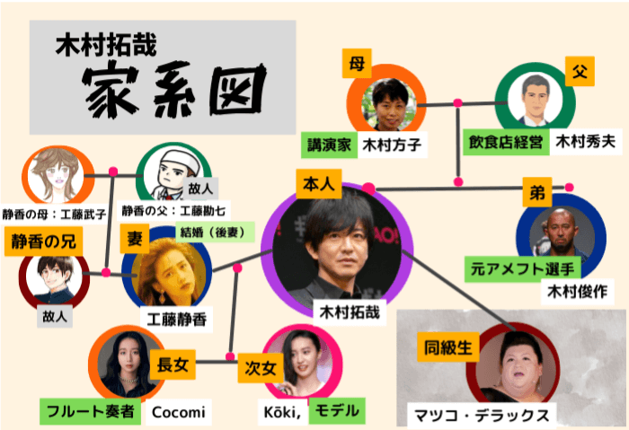顔画像 木村拓哉の家族構成!父親は盆栽カフェ経営で弟の現在の職業はアメフト関係!2025 – 家族の肖像。